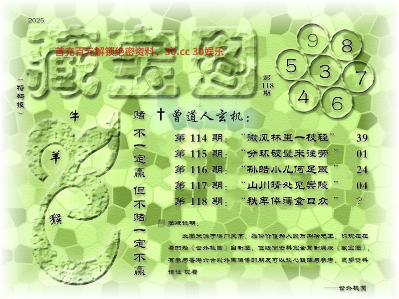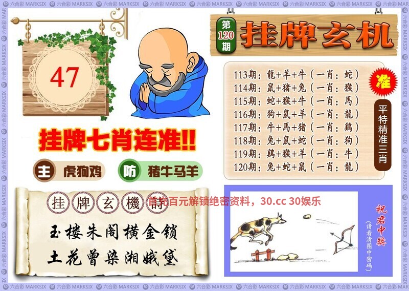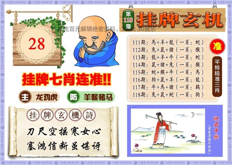 121期无字天书:财神送来猴和猪,跟牛胜定不后悔。羊20
